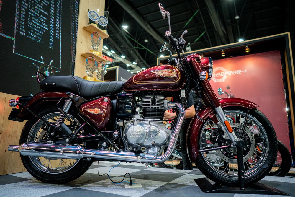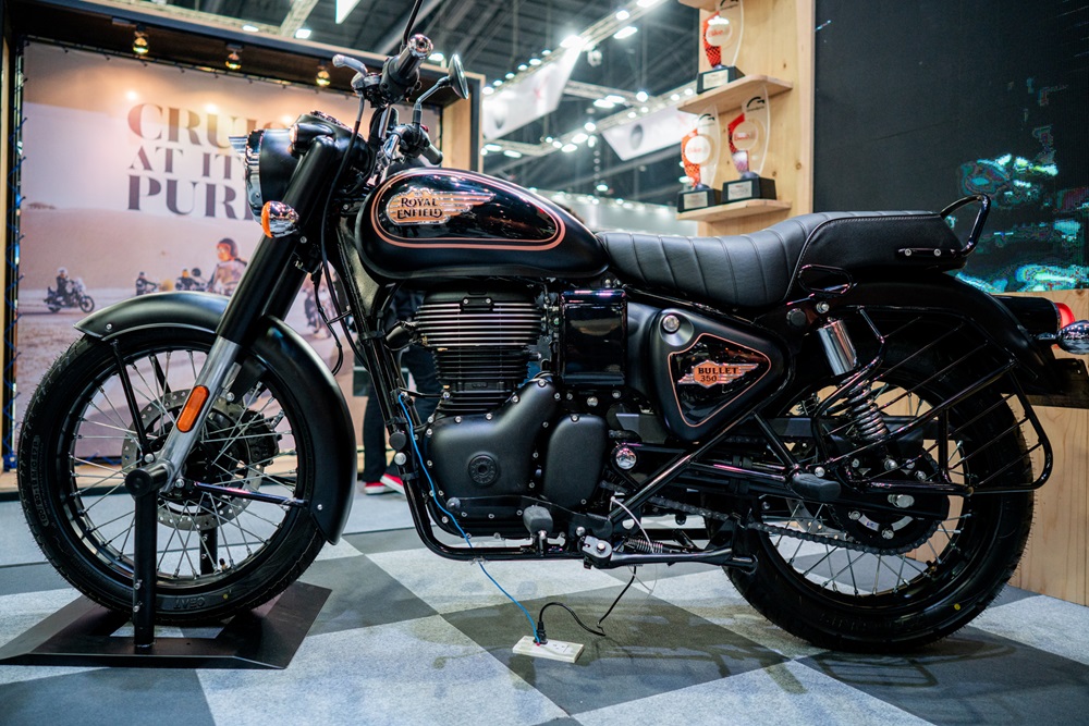 Bullet 350 ใหม่ ปี 2023 มีให้เลือกถึง 3 สี ด้วยการประกอบงานฝีมือระดับพรีเมียม โดยมีสี Standard Black, Standard Maroon และ Black Gold ที่มาพร้อมกับตัวถังลูกเล่นสีดำด้านและเงา พร้อมเส้นสายบนถังน้ำมันที่วาดด้วยมือสีทองแดง และเครื่องยนต์และชิ้นส่วนสีดำที่ทันสมัย พร้อมระบบเบรก ABS แบบสองทิศทางและดิสก์เบรกหลัง ทั้งสามสีมาพร้อมกับถังน้ำมันทรงหยดน้ำขนาด 13 ลิตร และไฟหน้าแบบใหม่พร้อมกับไฟนำทางแบบ ‘tiger eyes’ ซึ่งเป็นเอกลักษณ์ของรถจักรยานยนต์ Royal Enfield ตั้งแต่ปี 1954 แผงหน้าปัดแบบดิจิทัล-อนาล็อกแบบใหม่ หน้าจอ LCD และพอร์ตชาร์จ USB ที่ติดตั้งอยู่ใต้แฮนด์บาร์ตามมาตรฐานในทุกรุ่น สวิตช์ควบคุมได้รับการออกแบบมาอย่างพิเศษเพื่อให้มั่นใจว่าการออกแบบและการประกอบตัวเครื่องนั้นมีคุณภาพ สวยงามอย่างมีระดับ พร้อมสวิตช์ในรูปแบบปุ่มหมุน ดีไซน์สวยงามที่ผสมผสานความสะดวกในการใช้งานเข้ากับสไตล์ย้อนยุคที่น่ามอง โดยสี Standard Black, Standard Maroon และ สี Black Gold จะเริ่มส่งมอบรถได้ตั้งแต่ช่วงต้นปีหน้าเป็นต้นไป